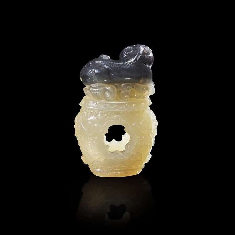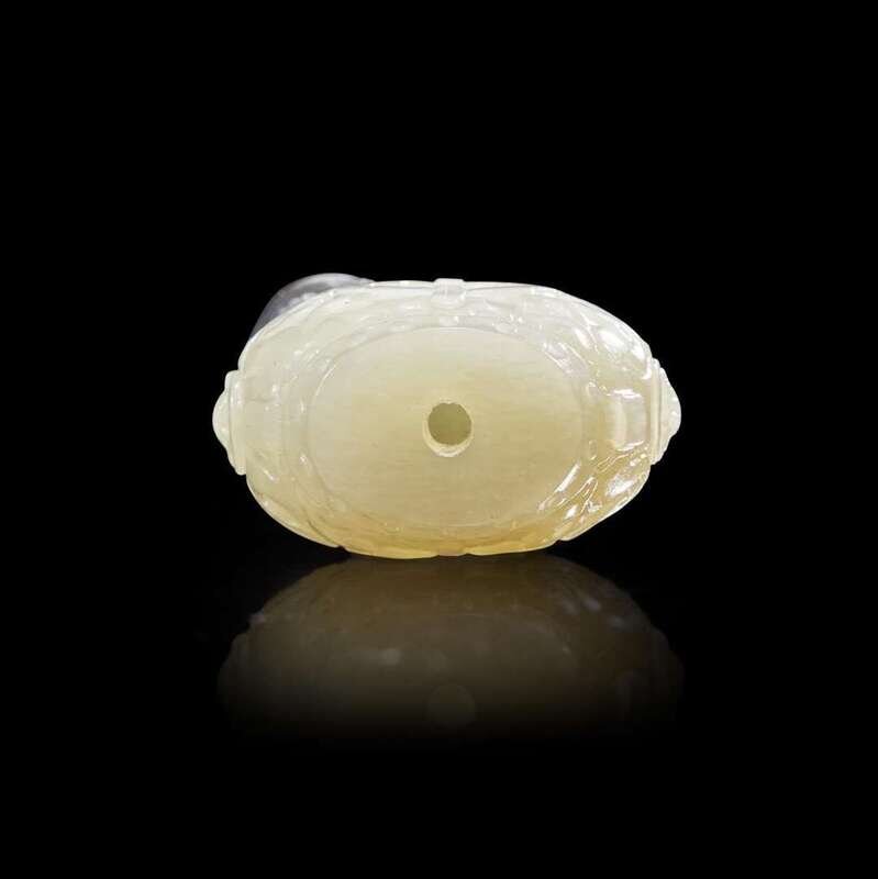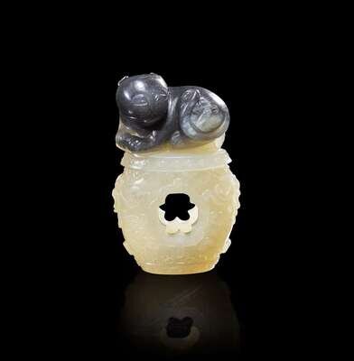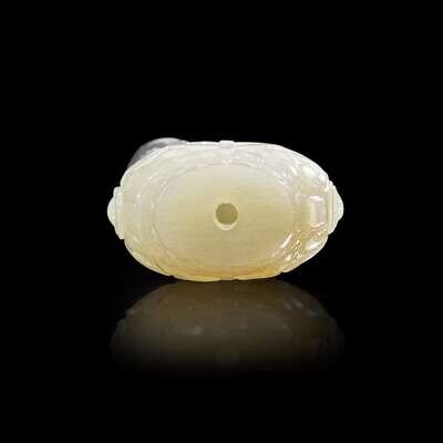 "Qiao Se" (skillfully using color), a classical practice of jade carving. The jade carver would work as a painter, manipulating the natural palete presented in the stone into the realization of the subject. It also better serves the purpose of conserving the precious jade material. Emperor Qianlong (1736-1795) once highly praised the technique.