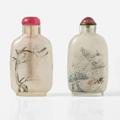 Two inside-painted snuff bottles 玻璃內畫鼻煙壺兩件 Inscribed Zhou Leyuan ?????