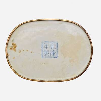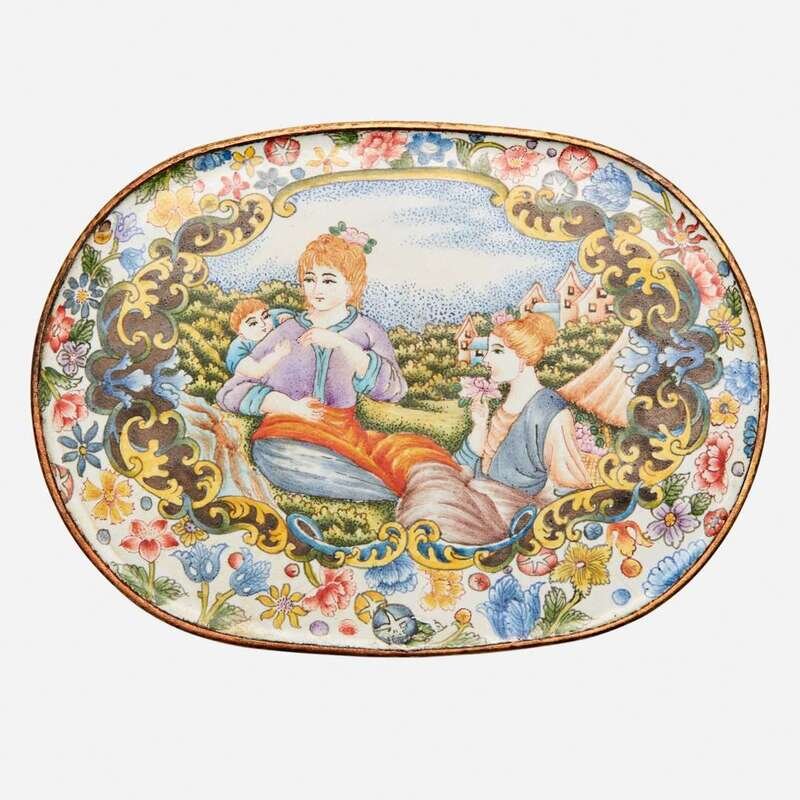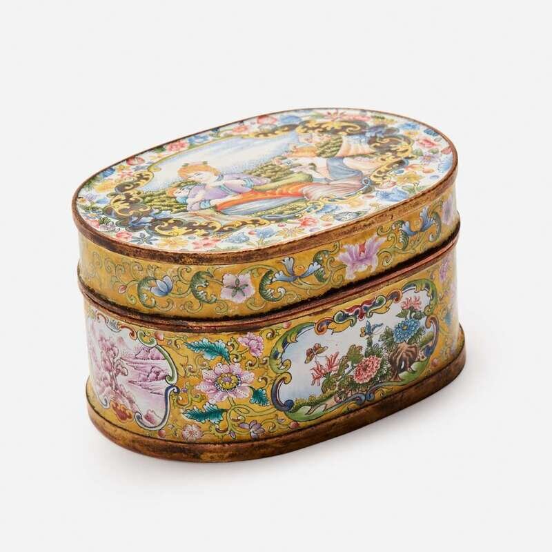 A Chinese enameled copper oval box and cover decorated with European subjects 銅胎畫琺瑯歐洲人物小盒