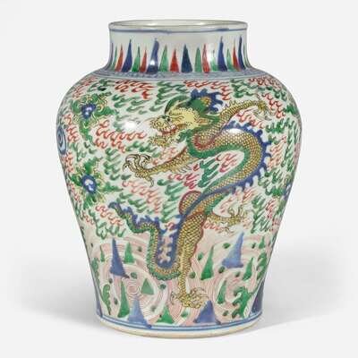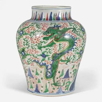 A Chinese Wucai decorated "Dragons" jar 五彩龍紋罐 17th century ????