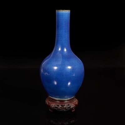 A Chinese blue-glazed bottle vase 藍釉淨瓶 18th/19th century ???????