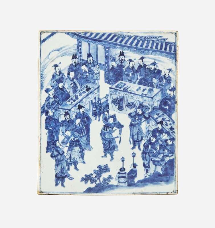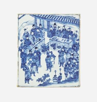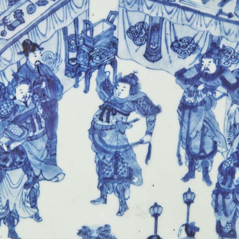 A Chinese blue and white porcelain figural plaque 青花人物故事瓷板 Kangxi period ??
