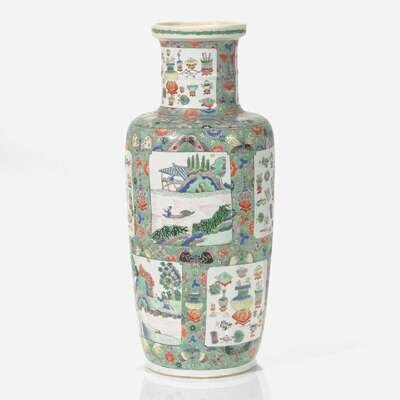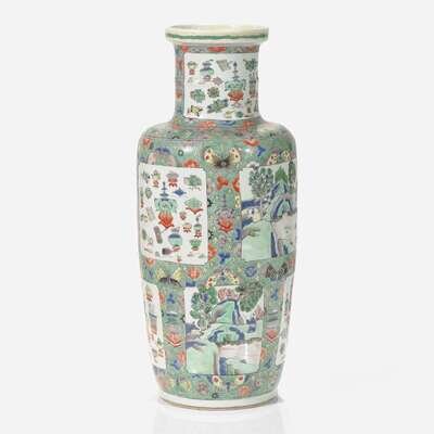 A Chinese famille verte-decorated porcelain rouleau vase 素三彩紙槌瓶 Kangxi period ? ??