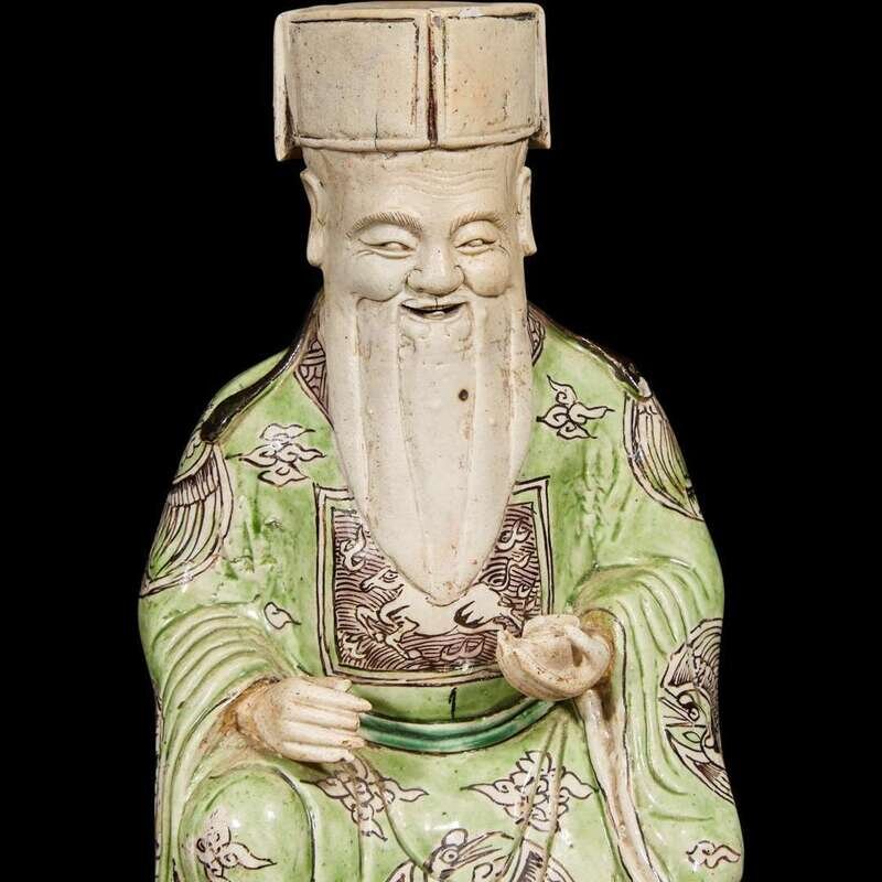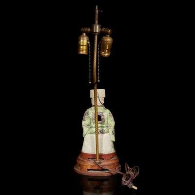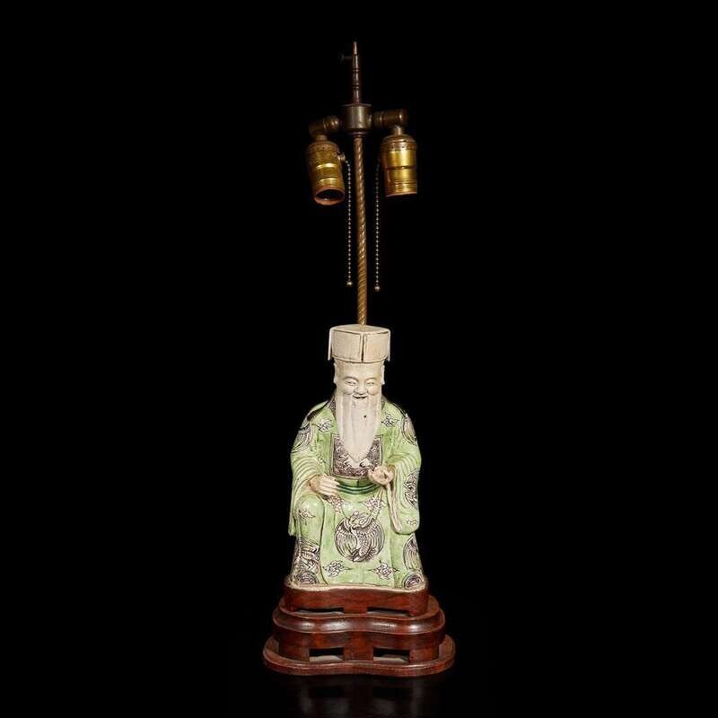 A Chinese famille verte-decorated figure of Cai Shen, mounted as lamp 素三彩財神改制檯燈 Kangxi period ???