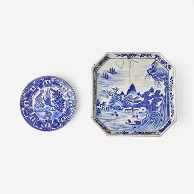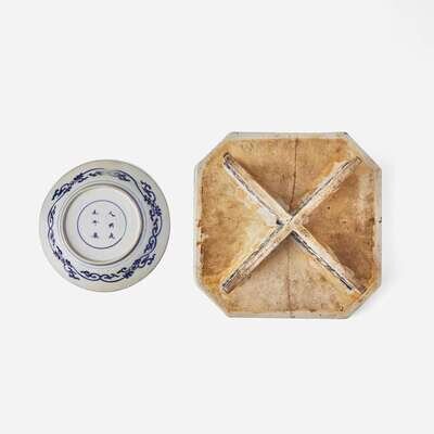 A Kraak style dish and an unusual blue and white stand 克拉克風格盤及青花底座 The first Kangxi period, the second Jiaqing ????? ?????