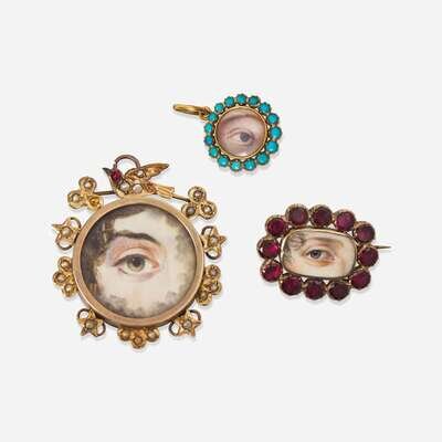 A Georgian "Lover's Eye" brooch and two pendants early 19th century