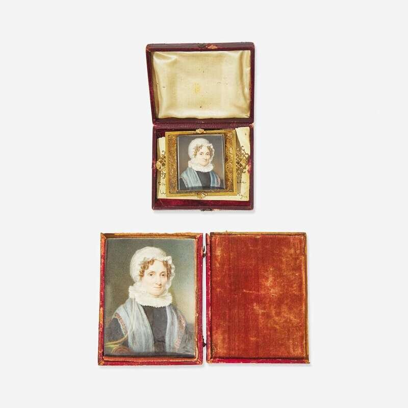 Sarah Goodridge (1788-1853) Portrait Miniature of Harriet Dawson McDonough (1761-1838) and Brooch