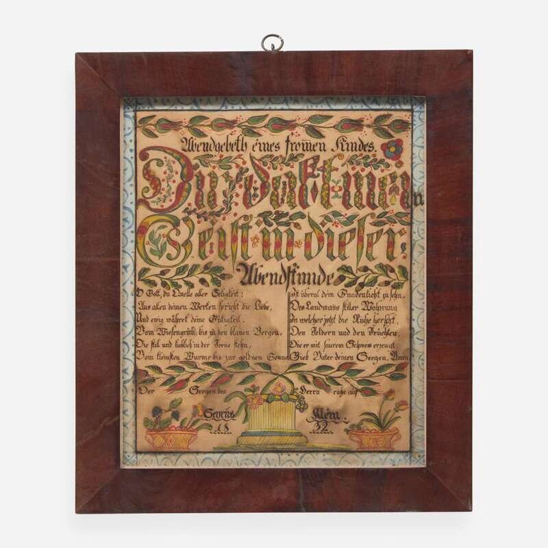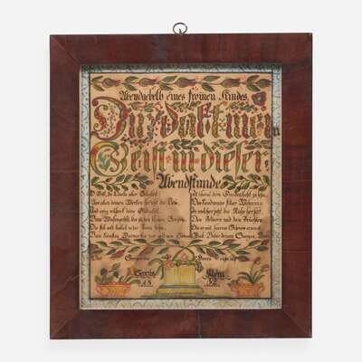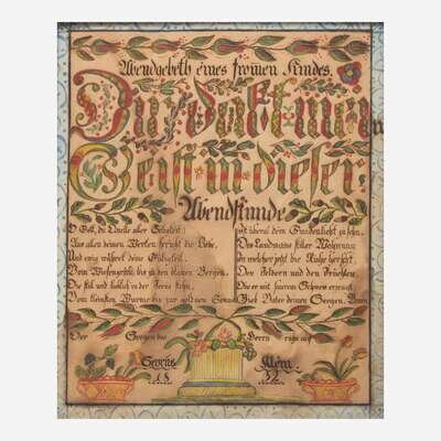 After Heinrich Englehardt (active, 1819-1836) A Fraktur: Evening Prayer for Cyrus Klein, dated "1832"