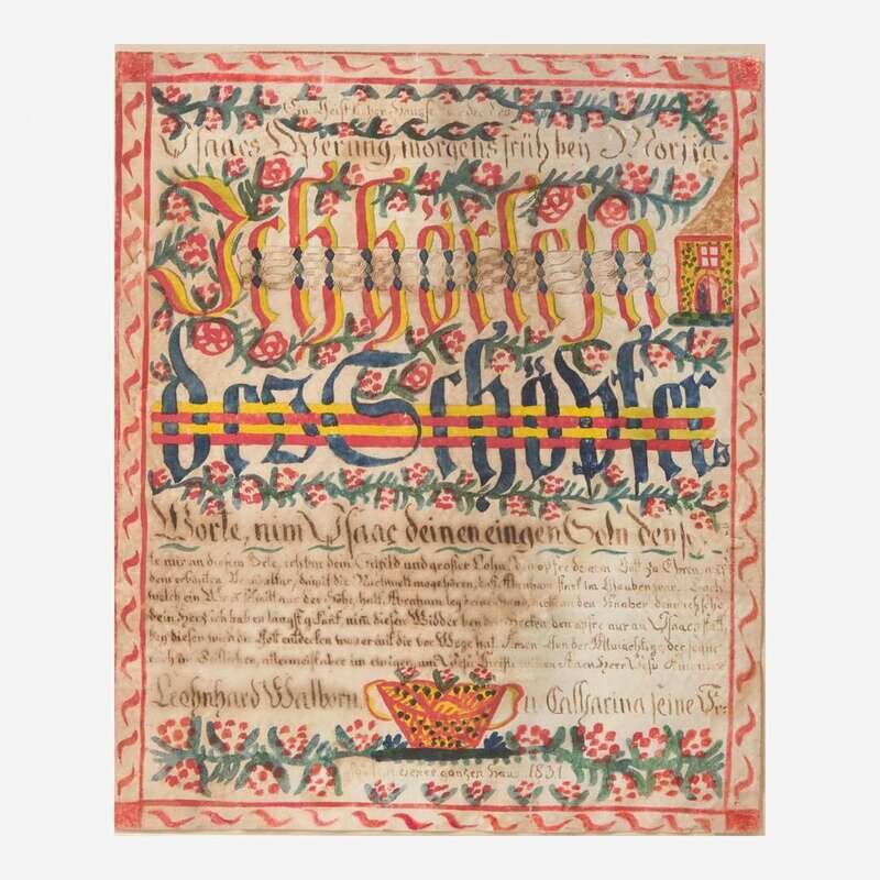 Heinrich Englehardt (active 1819-1836) Fraktur: A House Blessing, dated "1831"