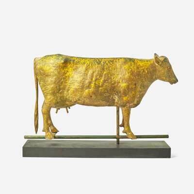 A patinated and gilded copper weathervane of a cow