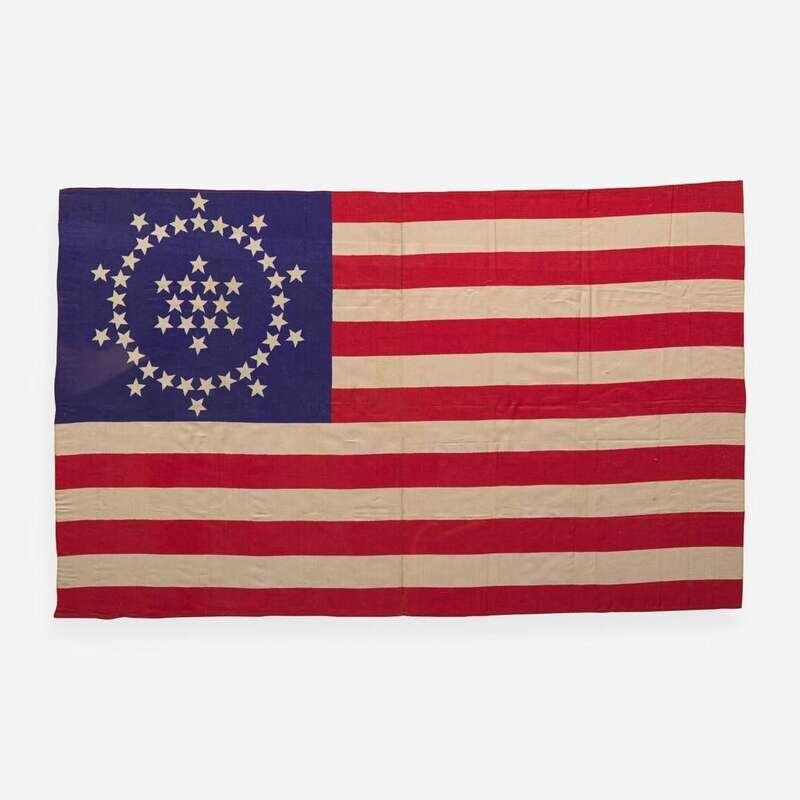 A 48-Star printed silk "Whipple" pattern American "Peace" Flag Probably Dettra Flag Co., Oaks, PA, 1912
