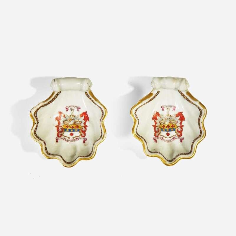 The candlestick circa 1740, and the pair of salts with the arms of Mercer and motto, "The Cipt Pout/ Crux Christi Nostra Corona," circa 1755.
