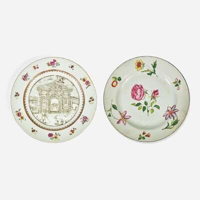 After the engraving published in Oxford in 1713; sold together with a Chinese Export porcelain plate with botanical decoration, circa 1730-1740.