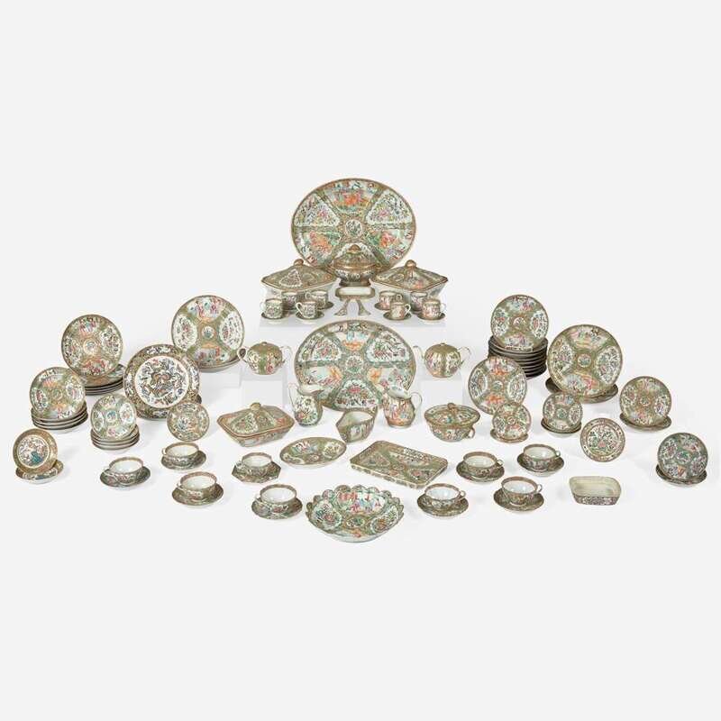 A large collection of ninety-eight Chinese Export porcelain Rose Medallion palette tablewares 19th century