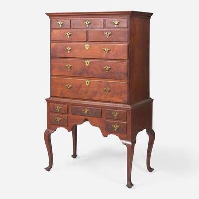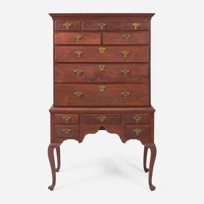 A Queen Anne walnut high chest Probably Pennsylvania, 18th century