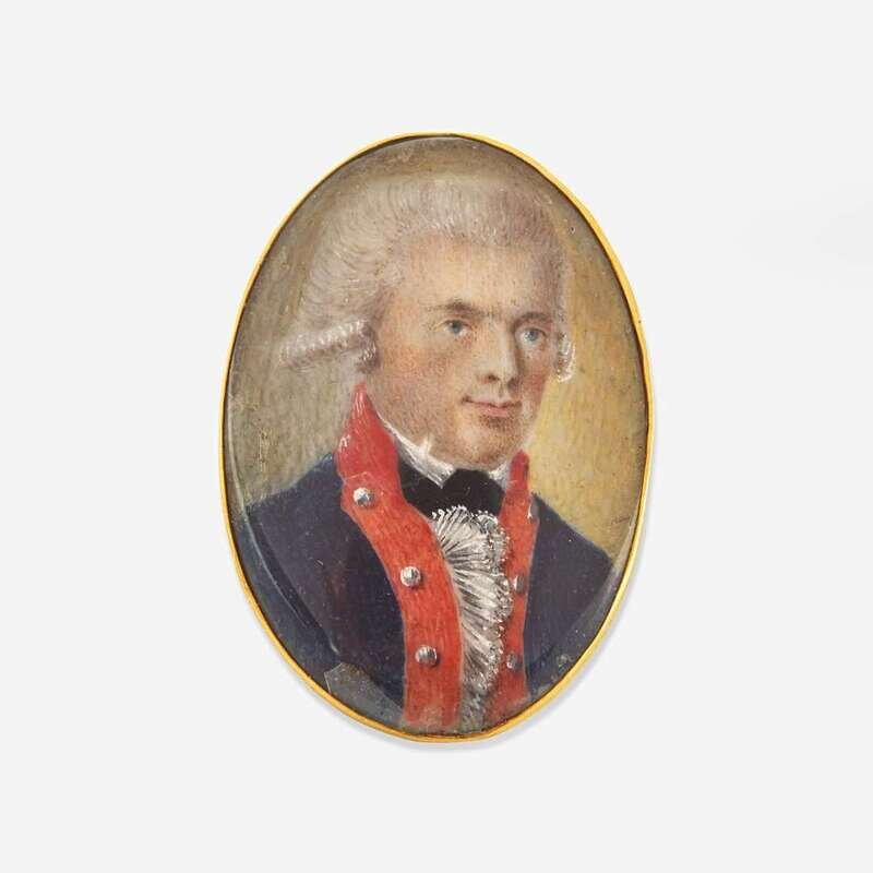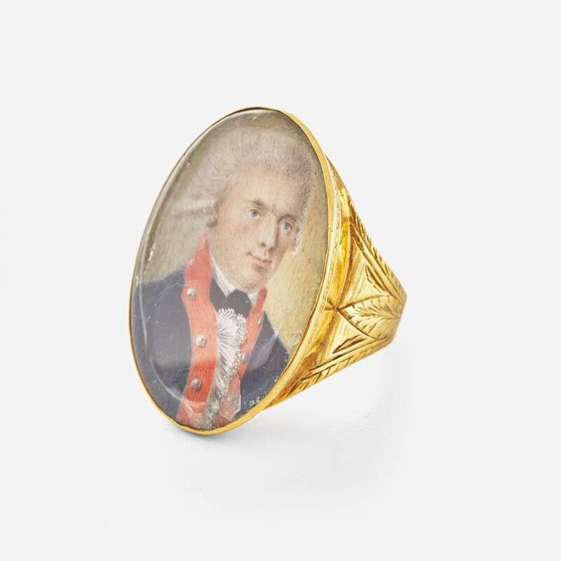 Watercolor, ring engraved "Captain George Dwyer" on underside.