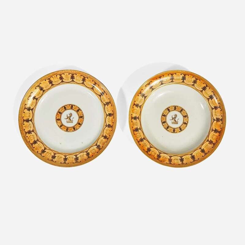 A Chinese Export porcelain Chew Wilcox service soup plate and plate early 19th century