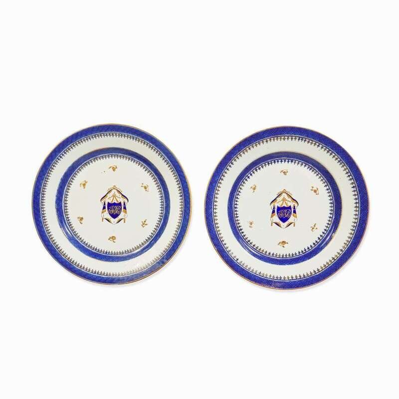 Two Chinese Export porcelain dinner plates associated with Nicholas and Anne Brown late 18th / early 19th century