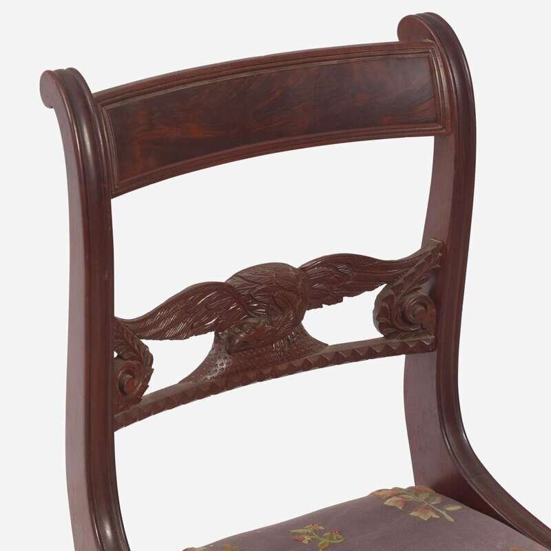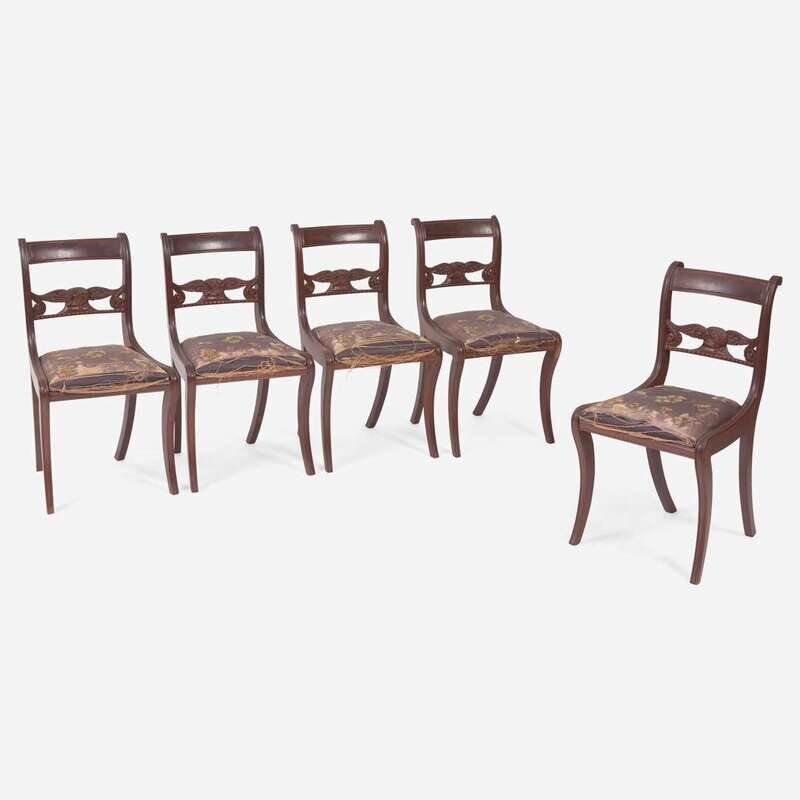 A set of five Federal carved mahogany eagle-back klismos side chairs New York, NY, circa 1820