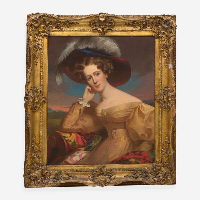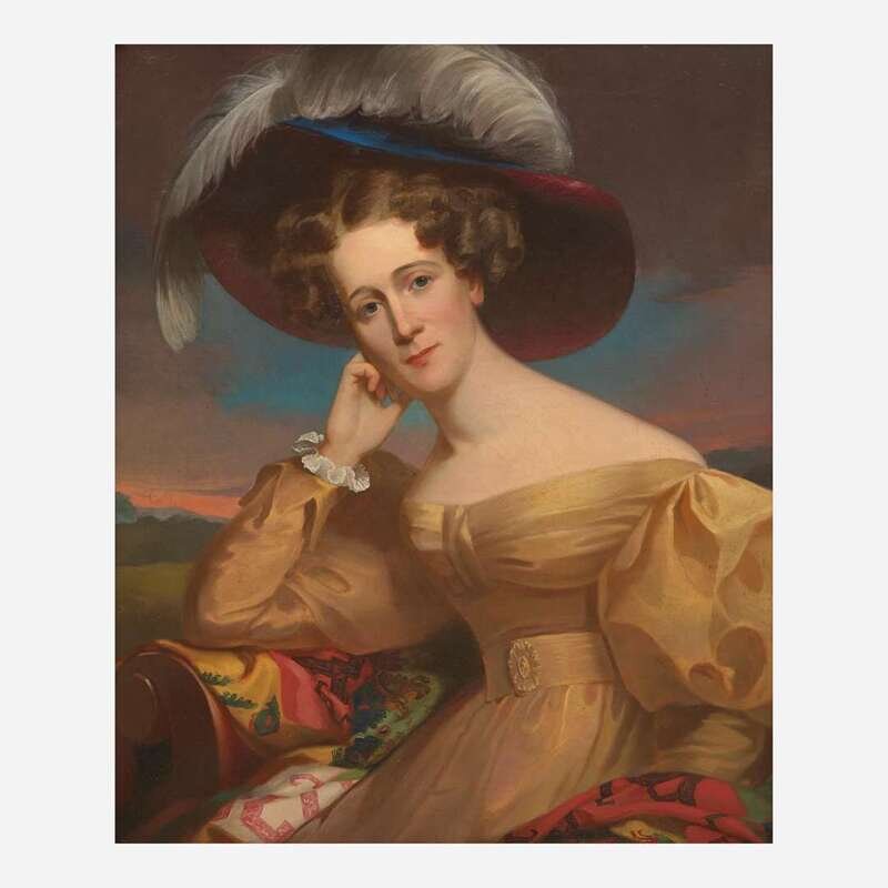 Attributed to Jacob Eichholtz (1776-1842) Portrait of a Fashionable Young Lady Wearing Feathered Hat