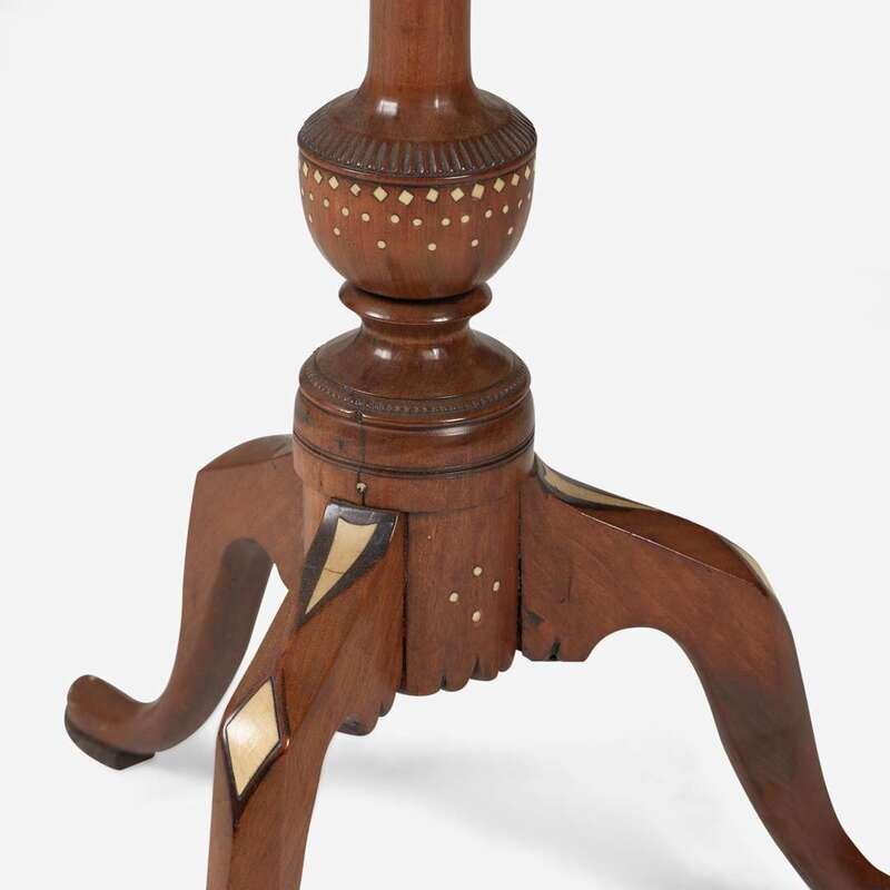 A Federal or George III inlaid mahogany and fruitwood tilt-top candlestand late 18th / early 19th century