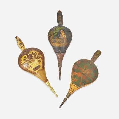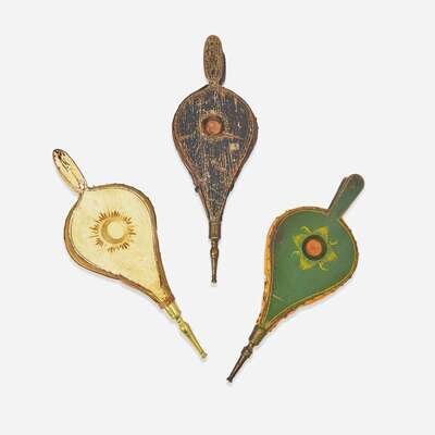 A group of three painted and decorated bellows One bearing label for Eckstein and Richardson, Philadelphia, PA, early 19th century