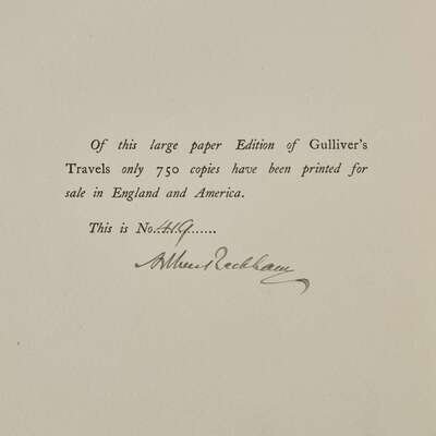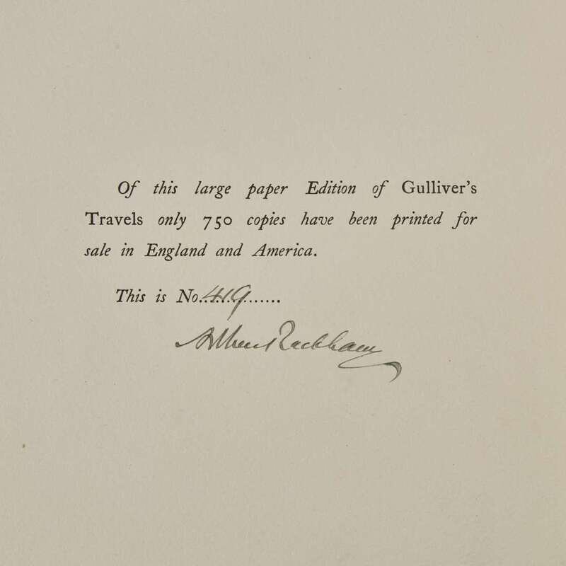 Publisher’s note laid in: “The plate facing page 256, entitled 'The Yahoos,' only appears in this Large Paper Edition, which is limited to 750 copies, and is not included in the ordinary edition.”