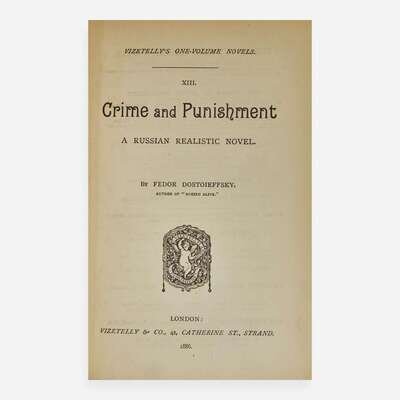 A rare first edition in English of Dostoevsky's masterpiece. This edition was published in London in April 1886, and precedes the first American edition by T.Y. Crowell in October, 1886, by seven months.