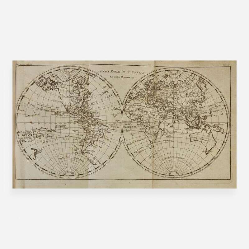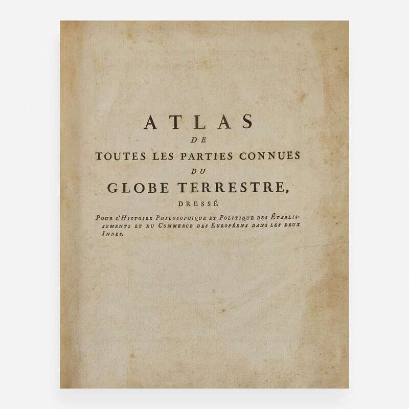 A handsome copy of the atlas volume for Guillaume Thomas Raynal's L'Histoire philosophique et politique des etablissements et du commerce des Europeens dans les deux Indes. Featuring 50 detailed maps of the world, including two world maps, maps of North and South America, Africa, Asia, and Europe, as well as regional maps of the various European countries, Central America, the Caribbean, the Middle East, etc.