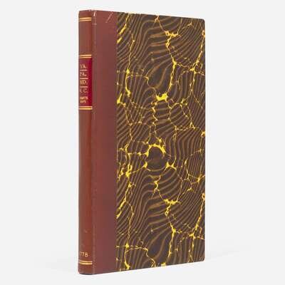 London: Printed for the Author, and Sold by J. Almon, 1778. First edition, first issue. 8vo. (ii), ii, 67, (1) (errata) pp. From the library of Philadelphia scientist, clockmaker, and Patriot, Owen Biddle, Sr., and with his signature at head of title-page. Illustrated with two engraved folding maps and one engraved folding table. Quarter brown calf over marbled paper-covered boards, stamped in blind and in gilt, red morocco spine label; all edges trimmed; stain on title-page, variously extending to p. 6; trimmed top edge of title-page just touching Biddle's signature, chip in corner of same removing "le" in same; scattered minor foxing to text leaves and plates; offsetting from plates. Howes H846; Sabin 34054; Streeter III-1299; Graff 2029; Vail 655; Soliday IV, 312a