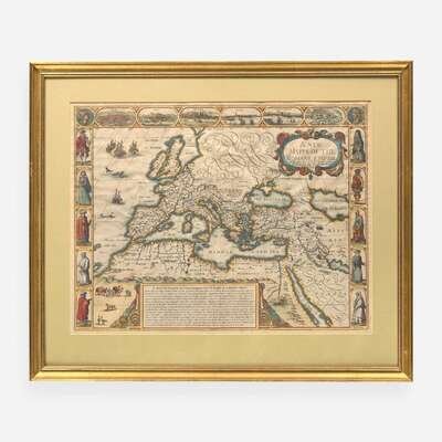 (London): G(eorge). Humble, 1626. Engraved map with hand-coloring, 16 1/4 x 21 5/8 in. (413 x 549 mm). English text on verso. In mat and in frame, 21 3/4 x 25 15/16 in. (552 x 659 mm).