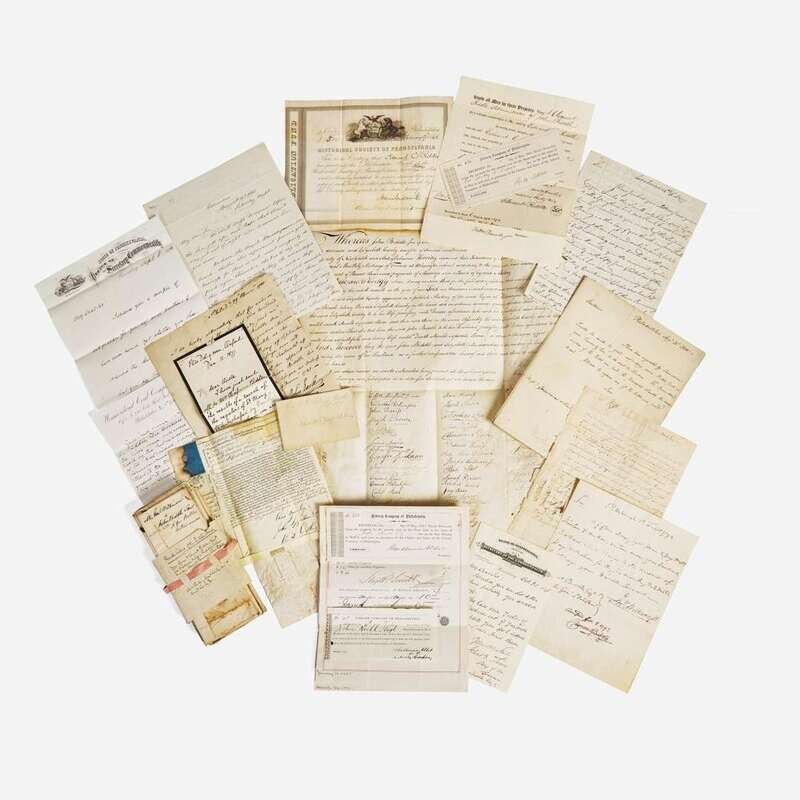 Locations vary, ca. largely 18th and 19th centuries. Includes 32 manuscript and/or printed letters and/or documents, as well as six books, all related to members of the Biddle family of Philadelphia, including Owen Biddle, Clement Biddle, Charles Biddle, John Biddle, Anna Biddle Wilkinson, James Biddle, Thomas Parke, Rudolph Tellier, and more. Size and condition varies although generally well preserved. Condition report upon request.