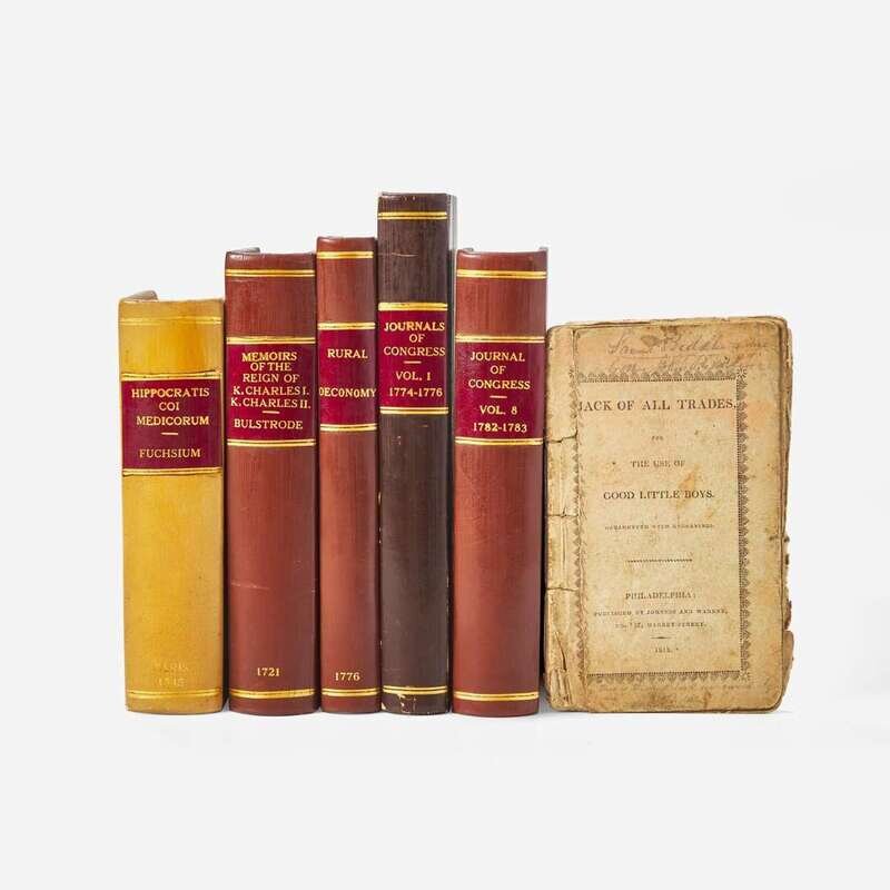 Philadelphia: Re-printed and sold by James Humphreys, Junr. 1776. Second edition. 12mo. Quarter brown calf over marbled paper-covered boards; all edges trimmed; moderate scattered foxing and browning; some underlining to text in black ink; two ownership signatures on title-page: John Biddle (1763-1815), and his son, Owen Biddle (1737-1799), who adds "1779" on the first page of text.