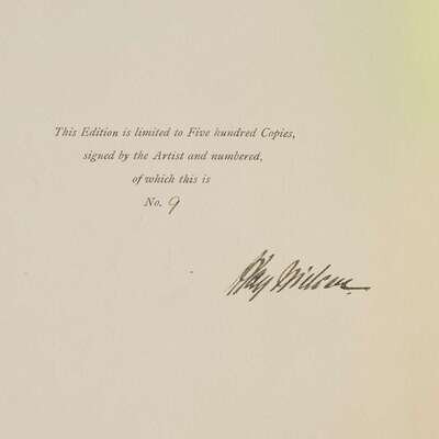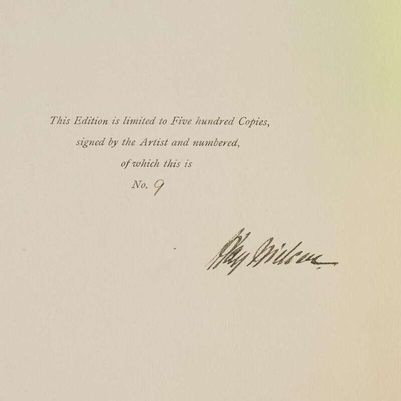 (London): Hodder & Stoughton, (1914). First and limited edition, #9/500 numbered copies, signed by Nielsen. 4to. (xii), (208) pp. Illustrated with a color frontispiece and 20 color plates, all mounted and all with captioned tissue guards, and numerous in-text black and white illustrations. Publisher's deluxe full vellum, decorated in gilt and in blue, slightly bowed; top edge gilt, other edges untrimmed; illustrated endpapers; yellow silk ties likely replaced;