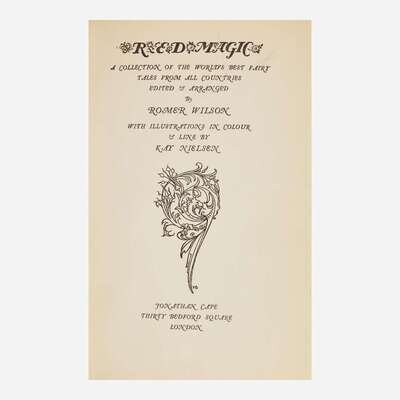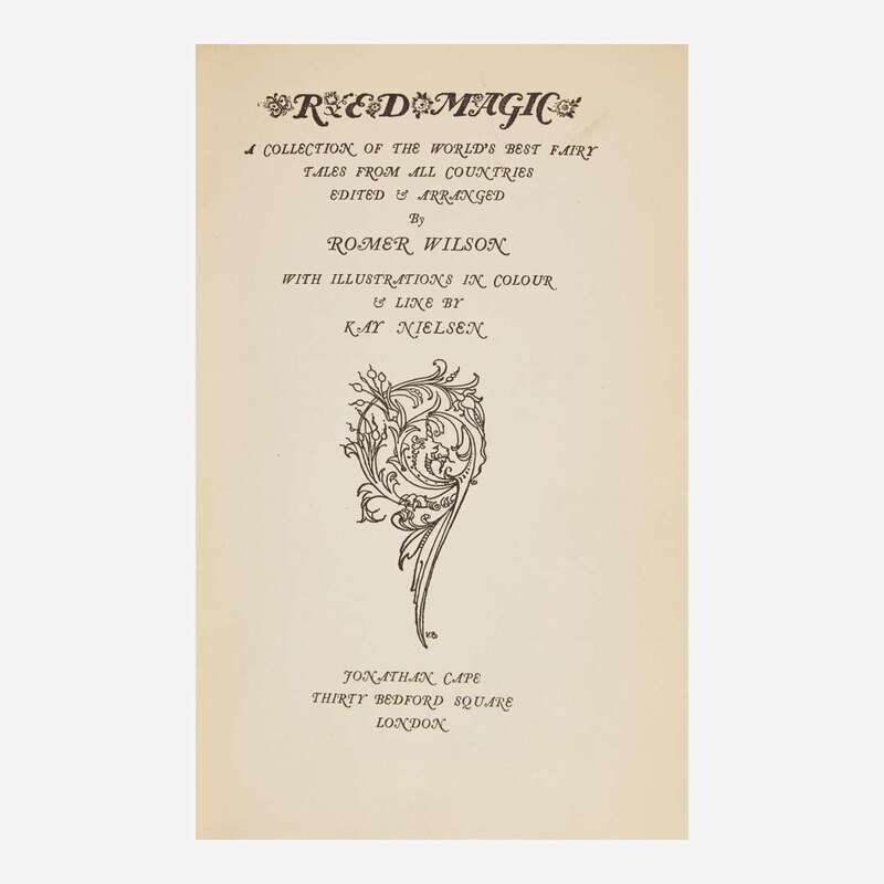 A fine copy of Kay Nielsen's final commissioned work, a collection of 20 fairy tales from around the world, profusely illustrated. As the demand for book illustrators dwindled in his home city of Copenhagen throughout the 1930s, Nielsen decided to move to California to find a job in Hollywood. After a recommendation from his friend and author, Joe Grant, he landed a job producing art for Walt Disney. In this role he contributed to many of Disney's beloved films, most notably Fantasia (1940) and The Little Mermaid (1989, posthumously).
