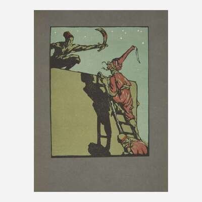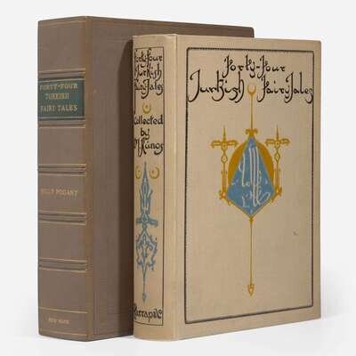 New York: Thomas Y. Crowell Co., (1913). First American edition. 4to. (xii), (363), (1) pp. Illustrated with color frontispiece and 15 colored plates, mounted on heavy gray paper, and numerous in-text black and white illustrations. Publisher's light brown pictorial cloth, stamped in black, ochre, and gray-blue; all edges trimmed, fore- and bottom edges foxed, a few pages unopened; illustrated endpapers; some foxing to prelims, and near edges throughout; from the library of Richard Manney and with his book-plate on verso of front free endpaper, old bookseller's ticket mounted above same; in full gray goatskin slip case, stamped in blind and in gilt, with green morocco spine label, and cloth chemise;