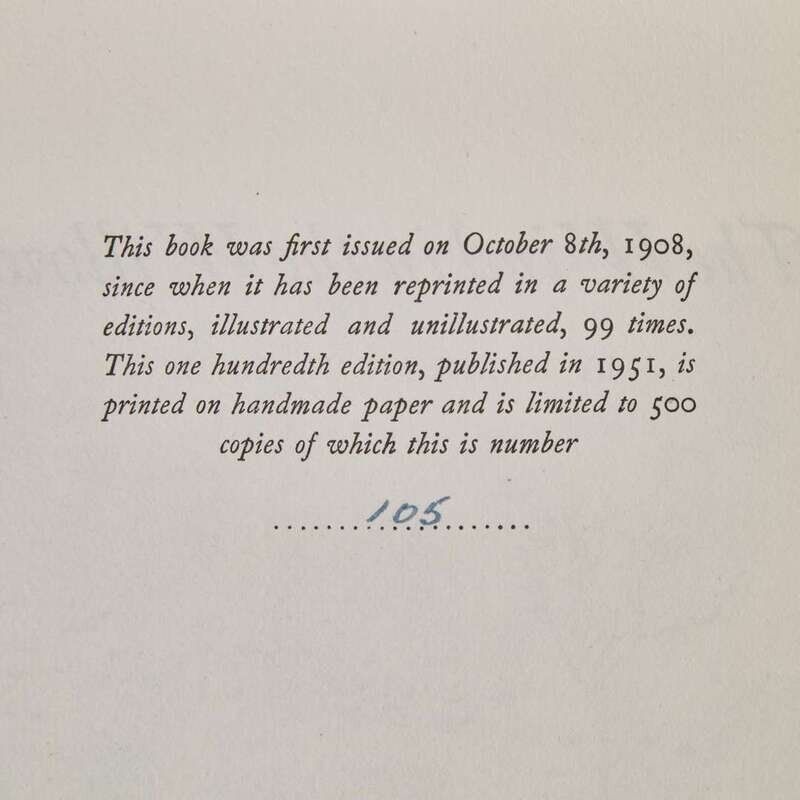 "Published originally by The Limited Editions Club with 16 colour illustrations, and was not published in England until 1950 by Methuen. This is the 1st deluxe edition with text illustrations." (Riall, p. 200)