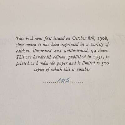 100th edition. From copyright page: "This book was first issued on October 8th, 1908...it has been reprinted in a variety of editions...99 times."