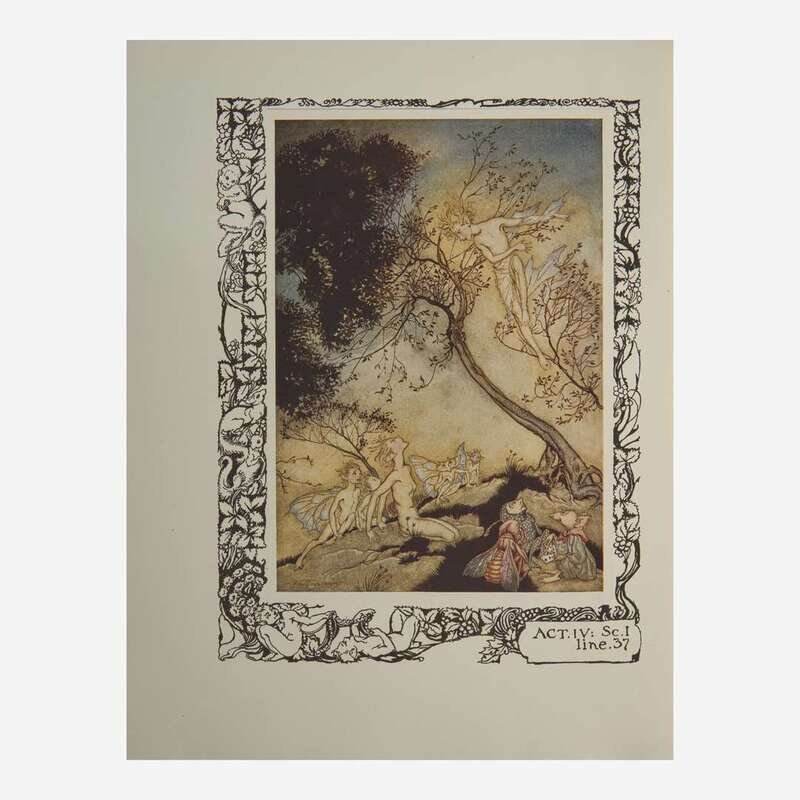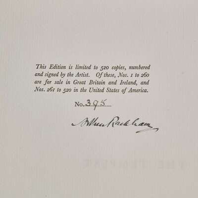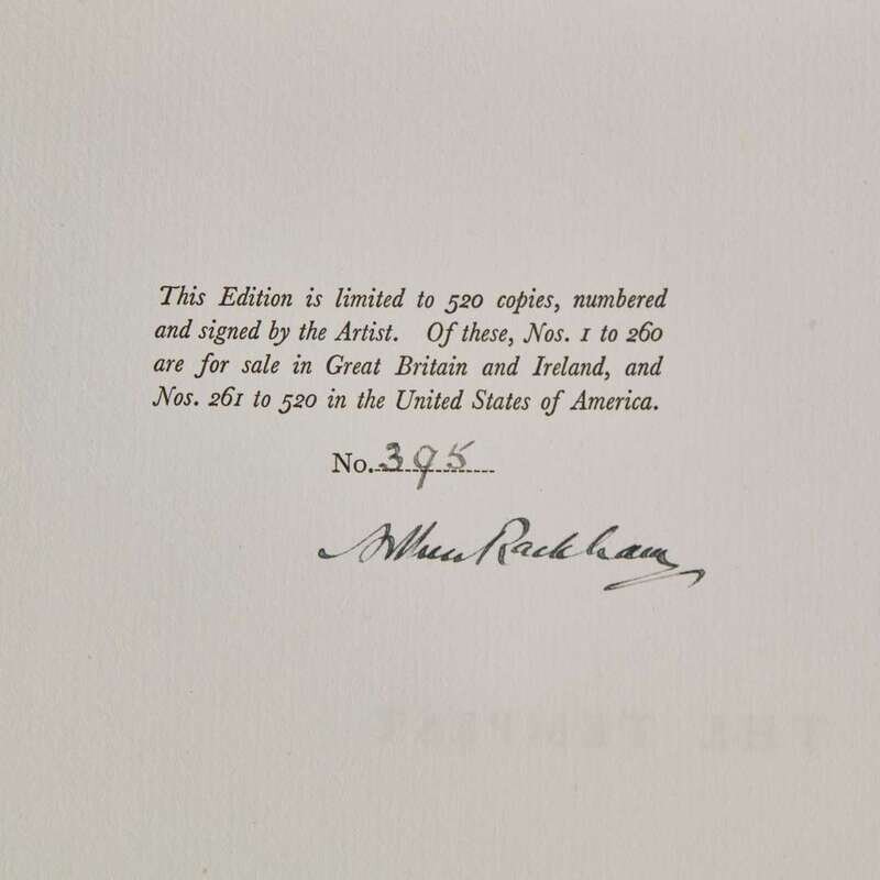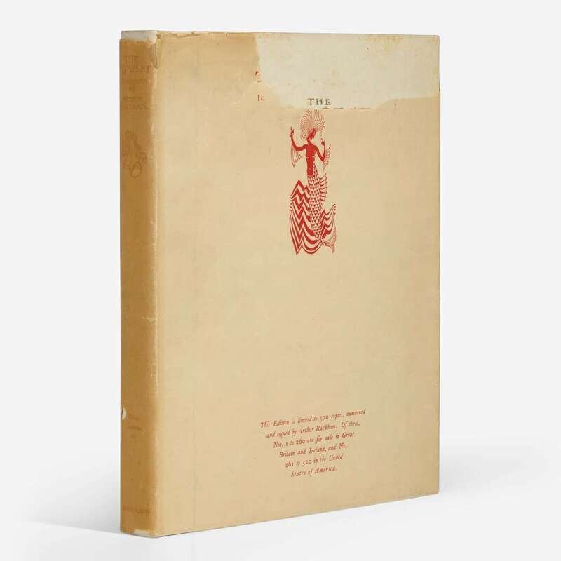 London: William Heinemann Ltd./New York: Doubleday, Page, & Company, (1926). First and limited edition, #395/520 numbered copies, signed by Rackham. 4to. (xiv), (186) pp. (1) pp. Illustrated with color frontispiece and 20 color plates, all mounted, and numerous in-text black and white illustrations. Publisher's quarter vellum over white paper-covered boards, stamped in gilt, lightly foxed; top edge gilt, other edges untrimmed; in dust-jacket, worn with a 2 x 6 1/2 in. section missing in top edge; Latimore & Haskell, pp. 61-62; Riall p. 161