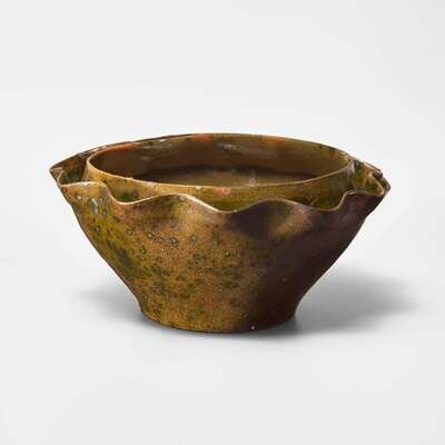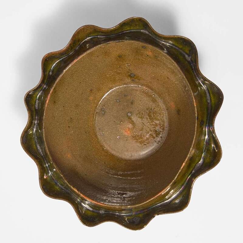 George Ohr (American, 1857-1918) Twin-Rimmed Vessel in Spotted Olive Glaze, Biloxi, Mississippi, USA, circa 1897-1900