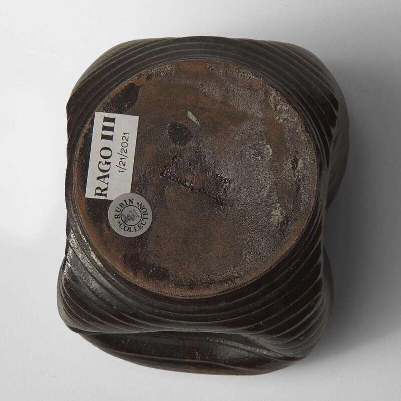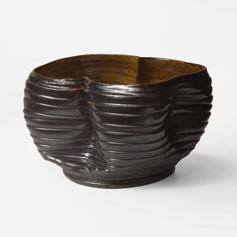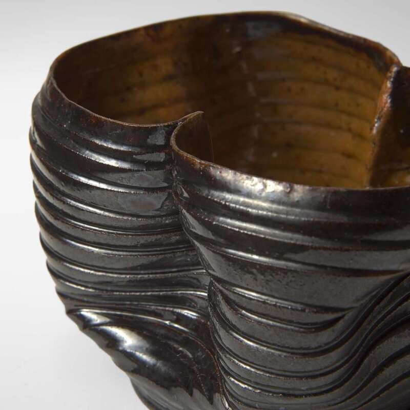 George Ohr (American, 1857-1918) Ribbed and Folded Vessel in Brown and Speckled Ochre Glaze, Biloxi, Mississippi, USA, circa 1897-1900