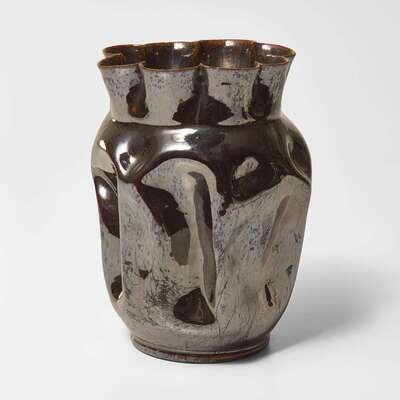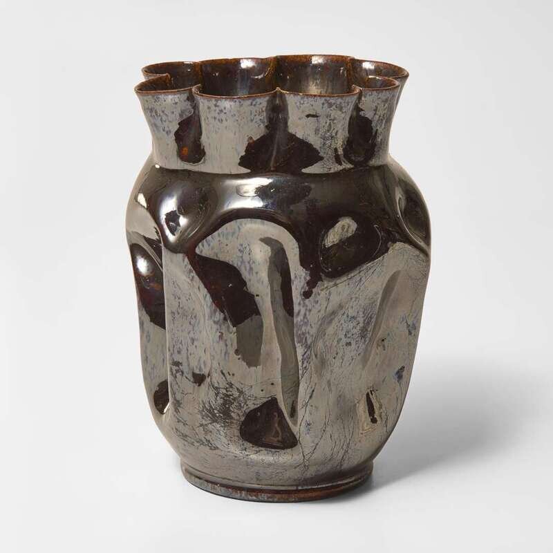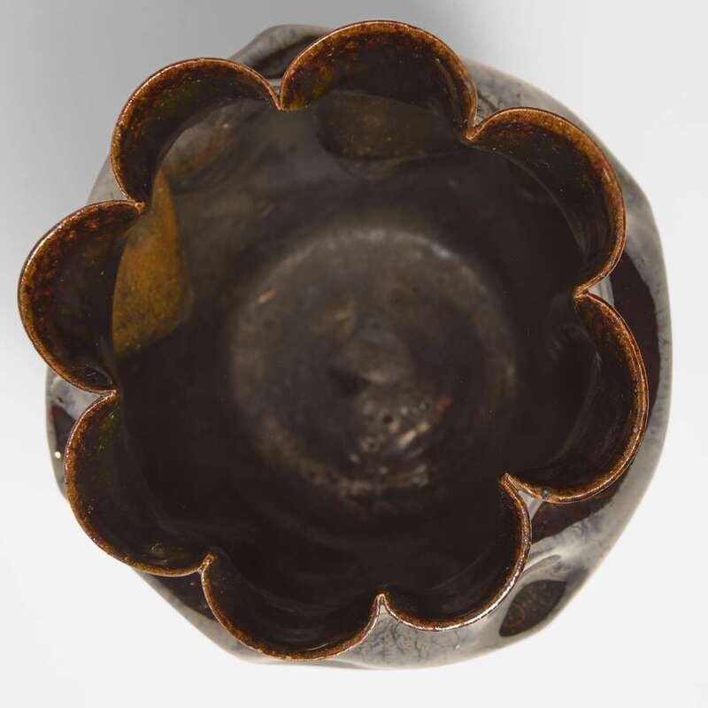 George Ohr (American, 1857-1918) Large Lobed and Dimpled Vase in Metallic Brown Gunmetal Glaze, Biloxi, Mississippi, USA, circa 1897-1900