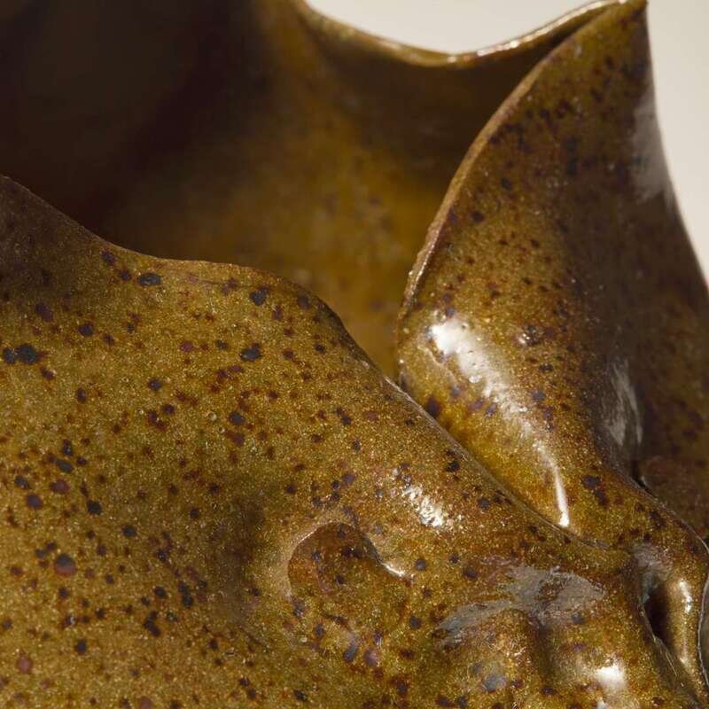 George Ohr (American, 1857-1918) Folded "Cat Face" Vessel in Speckled Olive-Brown Glaze, Biloxi, Mississippi, USA, circa 1897-1900