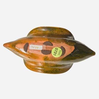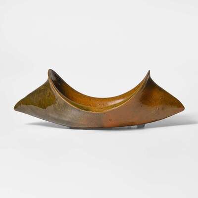 George Ohr (American, 1857-1918) Boat-Shaped Vessel in Olive Glaze, Biloxi, Mississippi, USA, circa 1895-1896