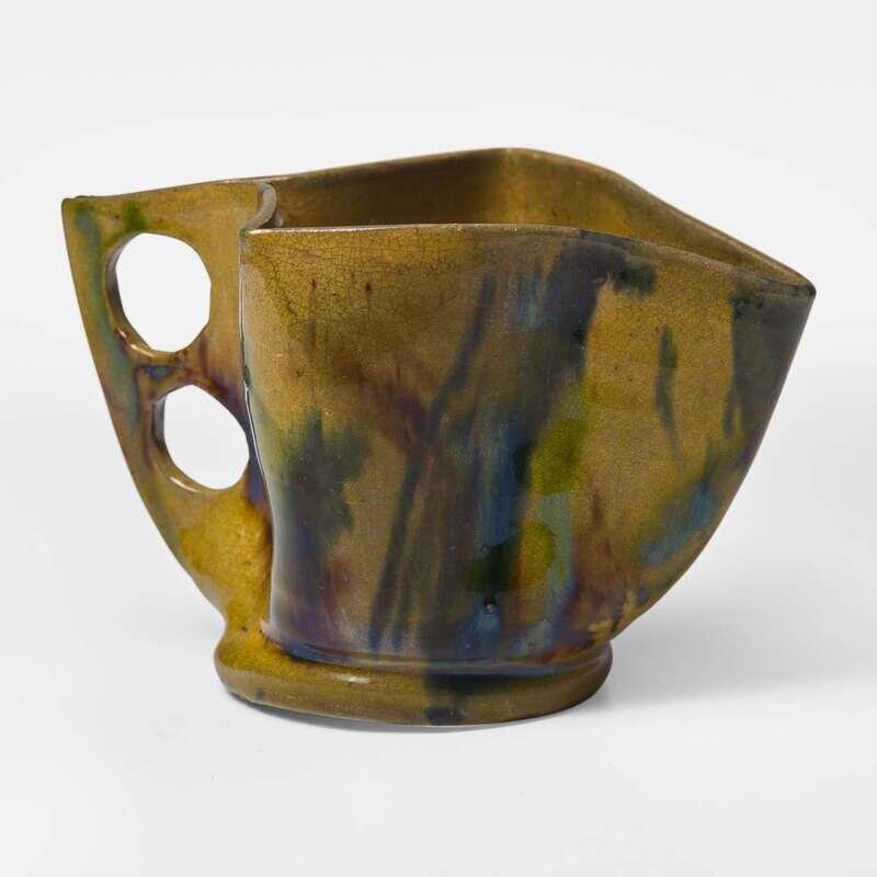George Ohr (American, 1857-1918) Small Pitcher in Olive, Cobalt, and Brown Glaze, Biloxi, Mississippi, USA, circa 1892-1894