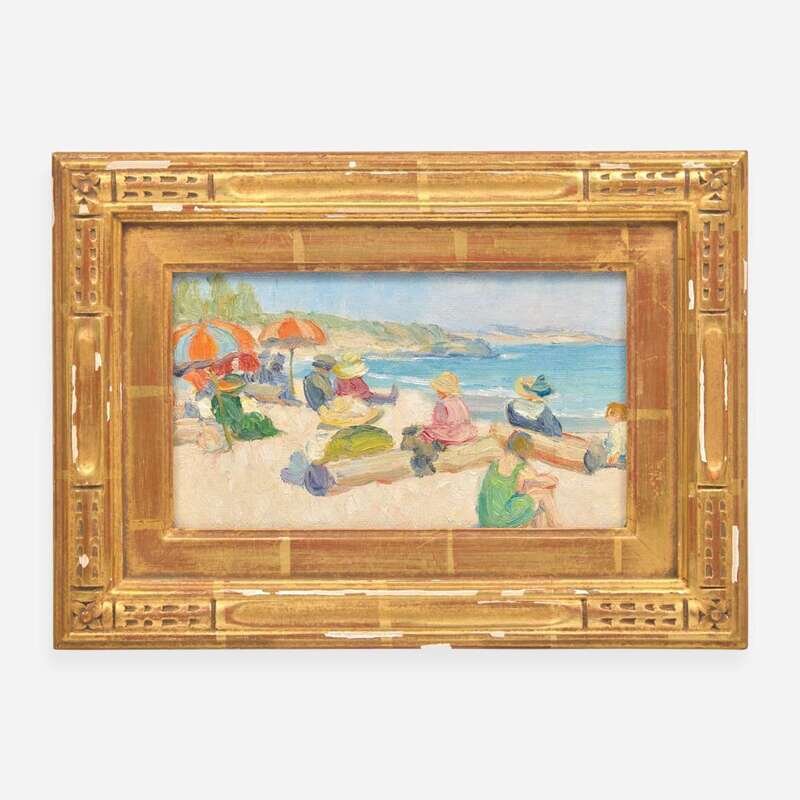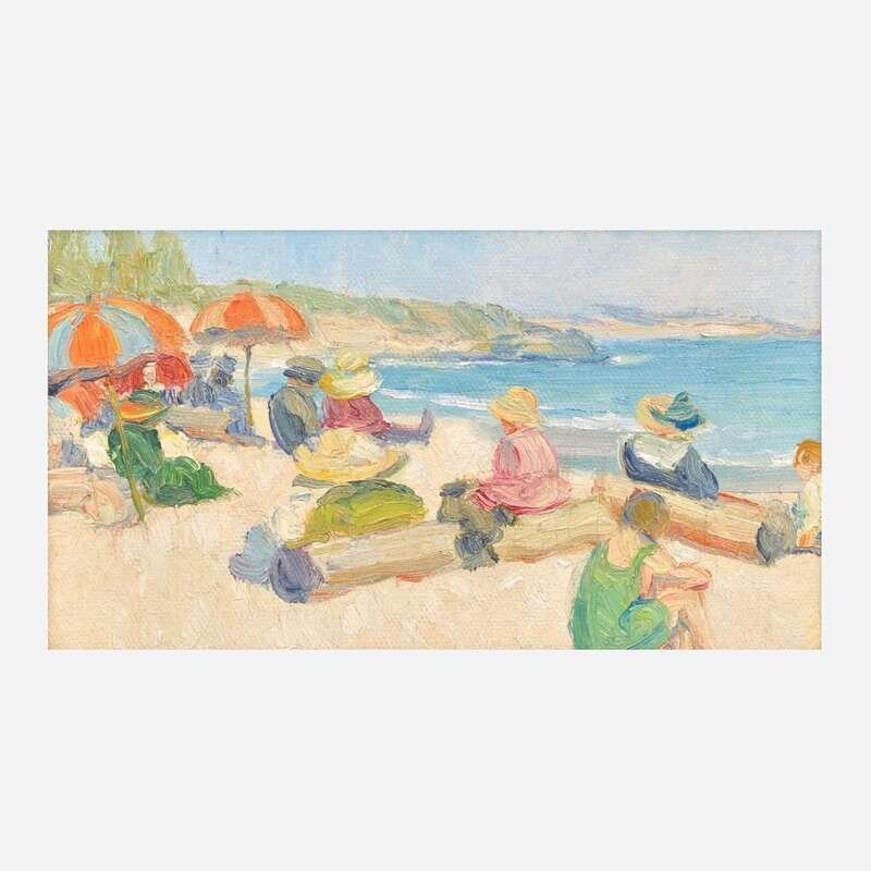 Alice Brown Chittenden (American, 1859-1944) Beachgoers with Umbrellas