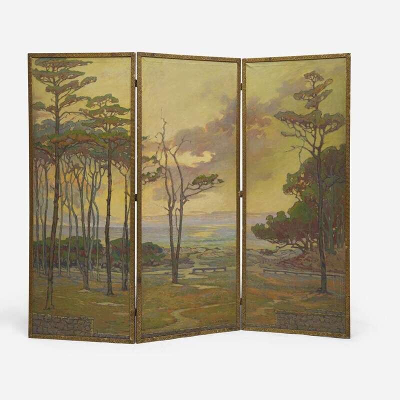 Calthea Campbell Vivian (American, 1857-1943) Cypresses, Pacific Grove, California (Three-Panel Screen)