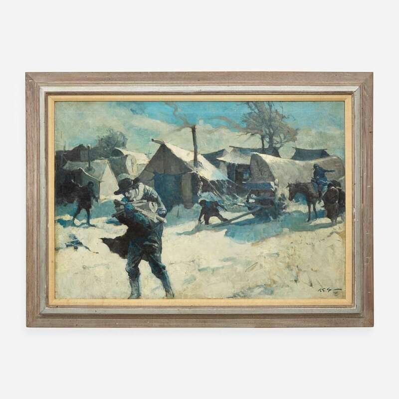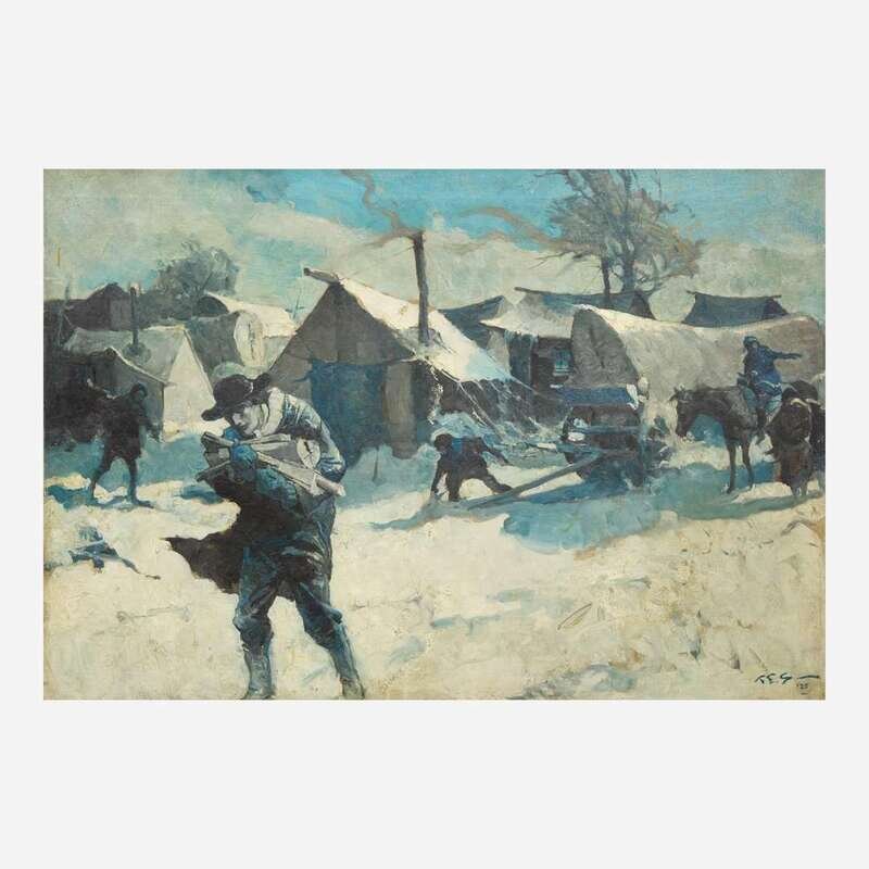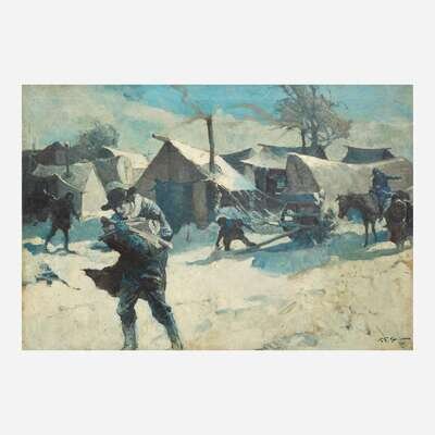 Frank Earle Schoonover (American, 1877-1972) Snowstorm at Poor Folks Haven (Poor Folks Haven, Snow Storm - Now It Was Nearing Christmas)
