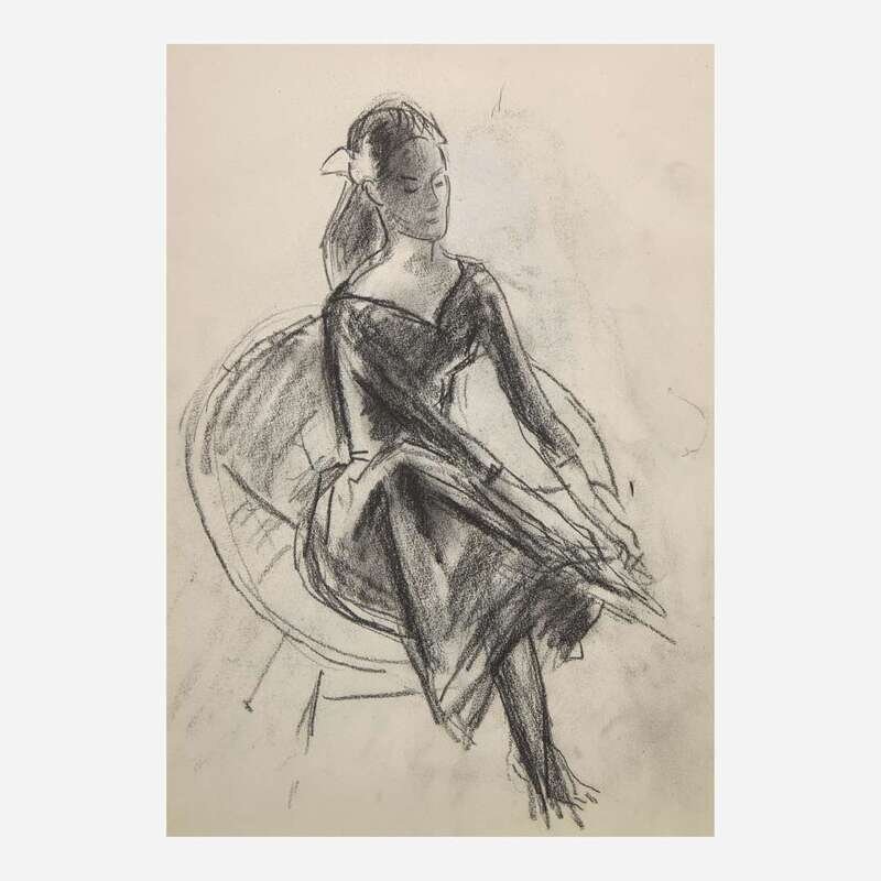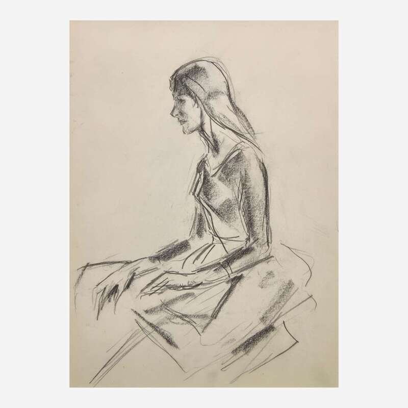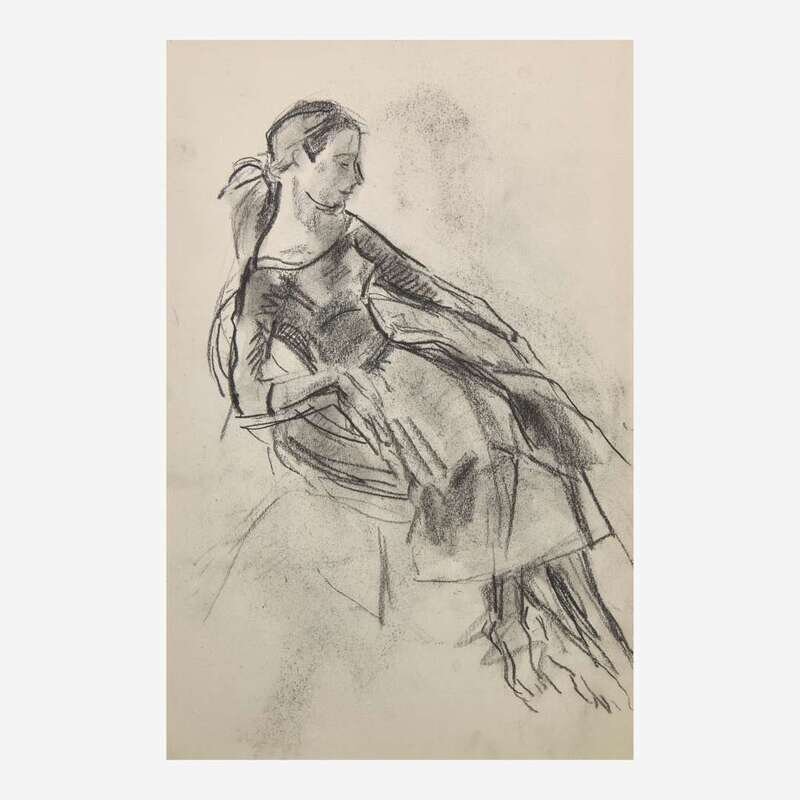 John Fulton Folinsbee (American, 1892-1972) Young Girl in Dress Seated; together with Seated Woman in Dress, and Young Woman Adjusting Shoe