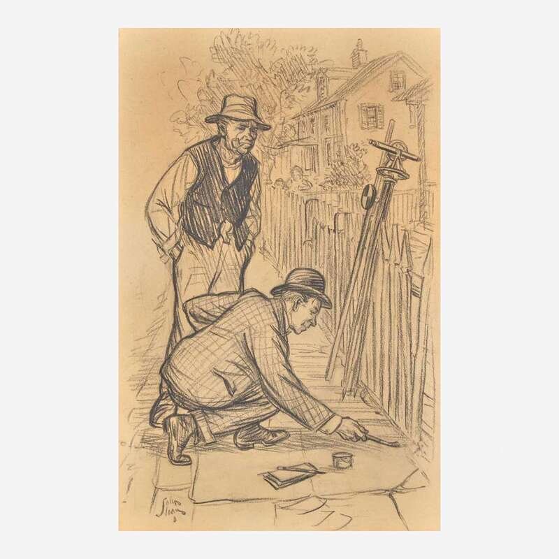 Signed 'John Sloan' lower left, charcoal on paper.